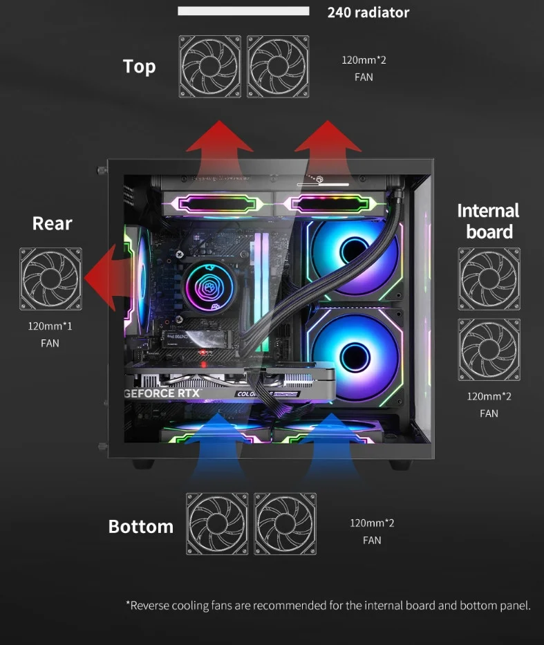 Üst Fan Desteği 2x 12cm Fan, 120/240mm Sıvı soğutucu