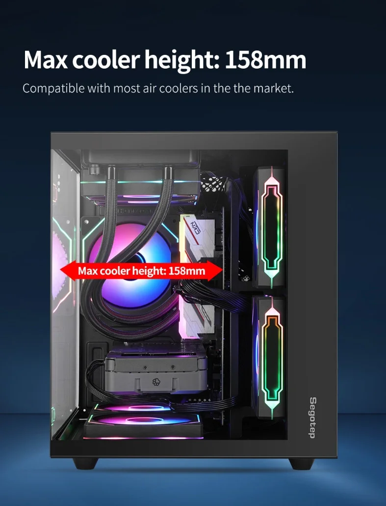 SEGOTEP Brave W1 Siyah 750W 80+ Bronze PCIE 5.0 Midi Tower Kasa (ARGB Fan)